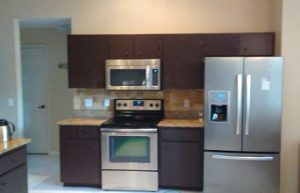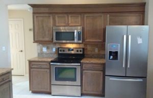 Below are photographs (before and after) of a cabinet refacing job we just completed in Port Orange, FL. As part of the job we changed the cabinet doors, added a riser and added crown molding. For more information about our cabinet refacing or our closet system service please call 386-734-1313.